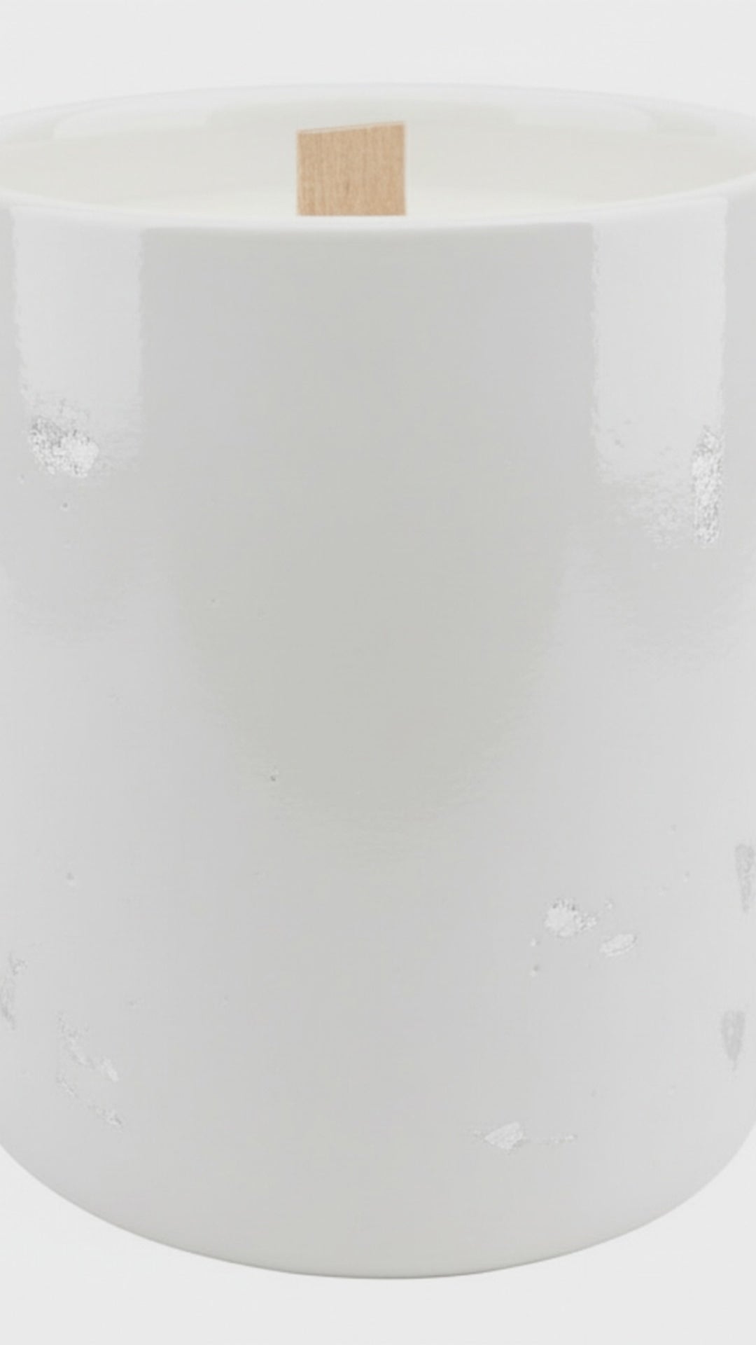 Το εξωτερικό είναι χειροποίητη πορσελάνη, δημιουργημένη από την Αλίκη Καβαλλιεράτου, διακοσμημένη με διακριτικές λεπτομέρειες από φύλλα λευκού χρυσού. Κάθε κερί είναι μοναδικό, με ανεπαίσθητες διαφοροποιήσεις που αναδεικνύουν τον χαρακτήρα του χειροποίητου αντικειμένου.